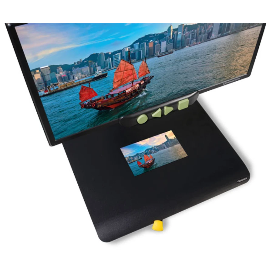 Videomatic מצוידת במצלמת FullHD אשר מגדילה תמונות,ספרים, עיתונים וחומרים מודפסים אחרים. ניתן בקלות לכתוב או לקרוא בעזרת משטח XY המכיל מעצור חיכוך המותאם לנוחות קריאה המותאמת לכל משתמש.
