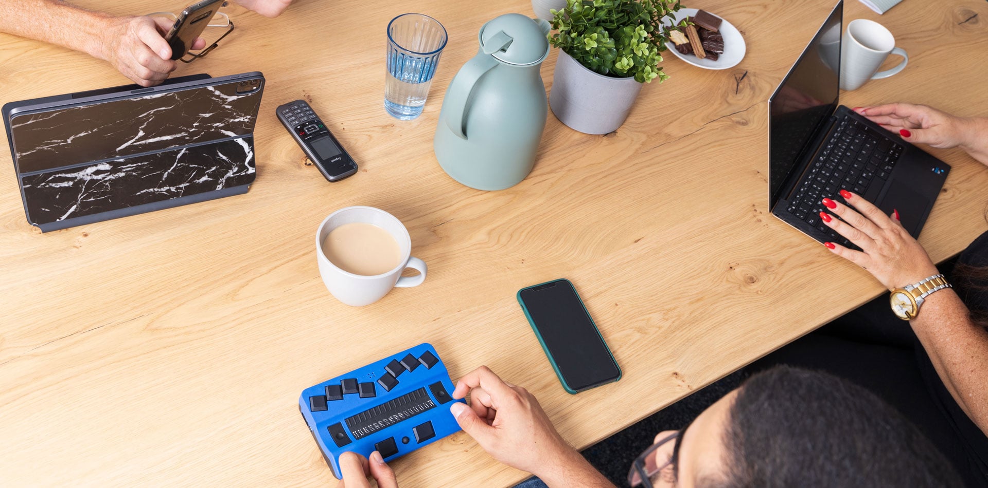 16 תאי ברייל קרמיים של פיזו ומקלדת הברייל השקטה הופכים את ה-Actilino לבן לוויה היומיומי שלך.