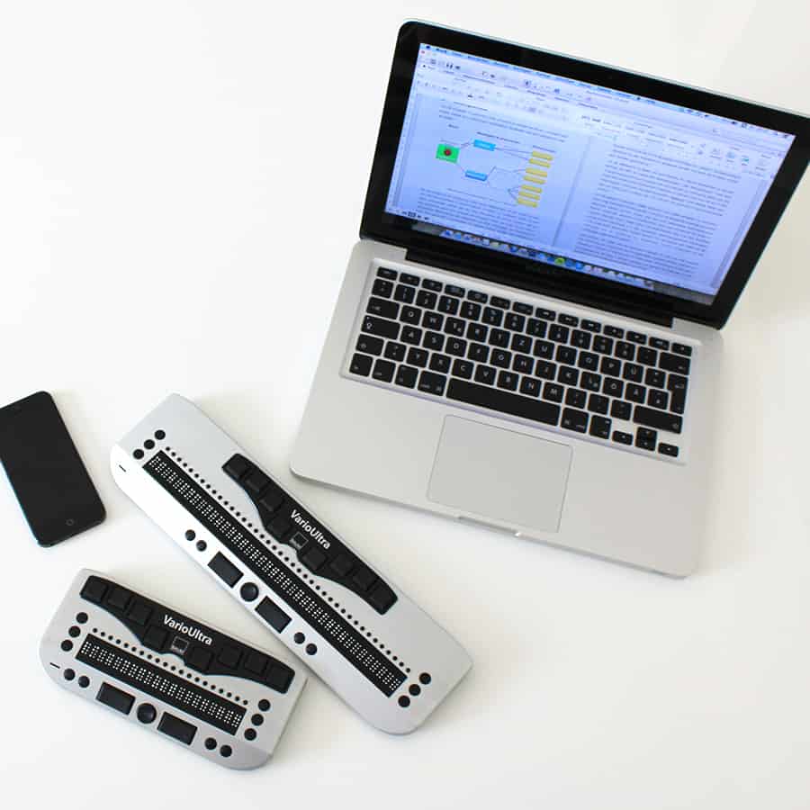 20 תאי ברייל עטופים בגוף אלומיניום קל וחזק.